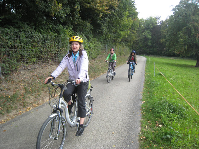 Aber auch Gerda muss warten… Unser Mann von Rent a Bike erklärt, wie die Velos funktionieren. Im Hintergrund sieht man einige aufmerksame Gesichter… | ![]() |